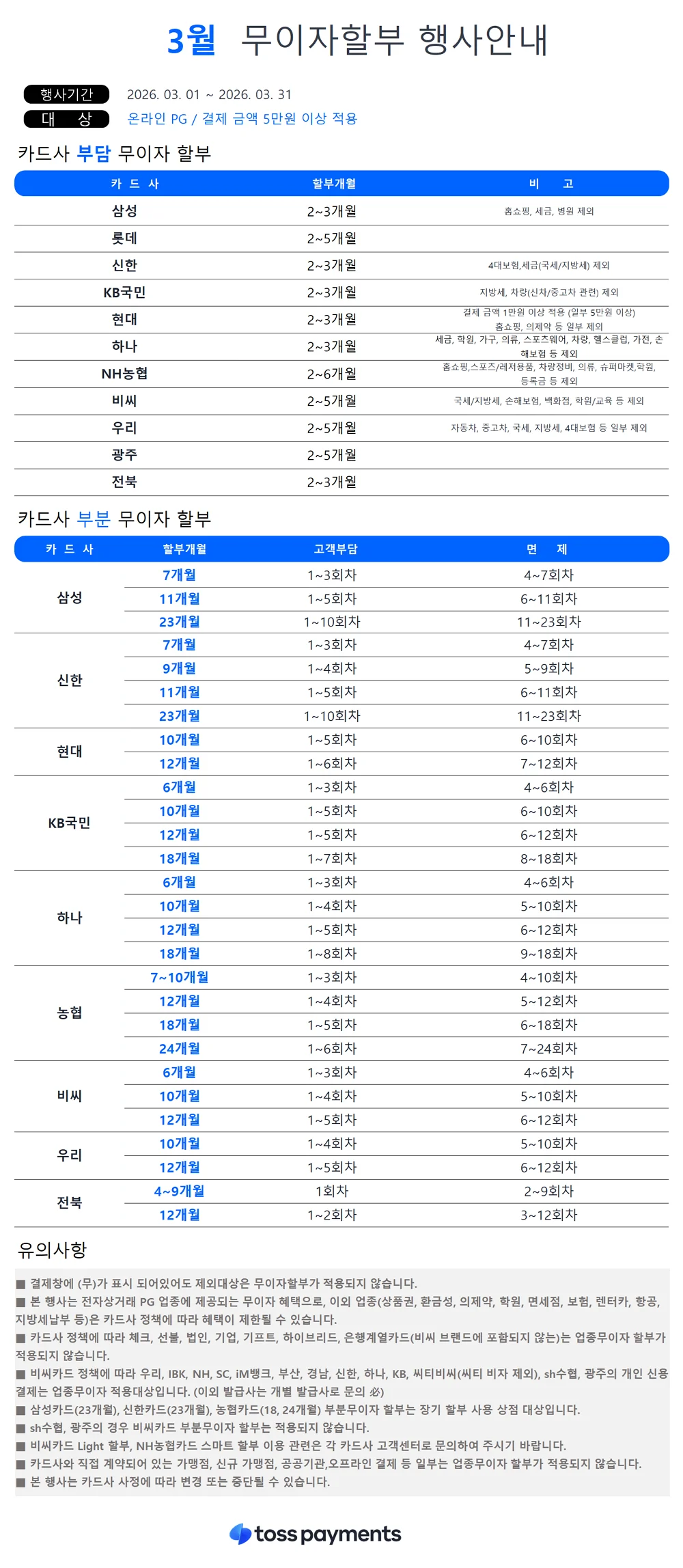■ 무이자 할부 카드 안내(2026년 3월)
